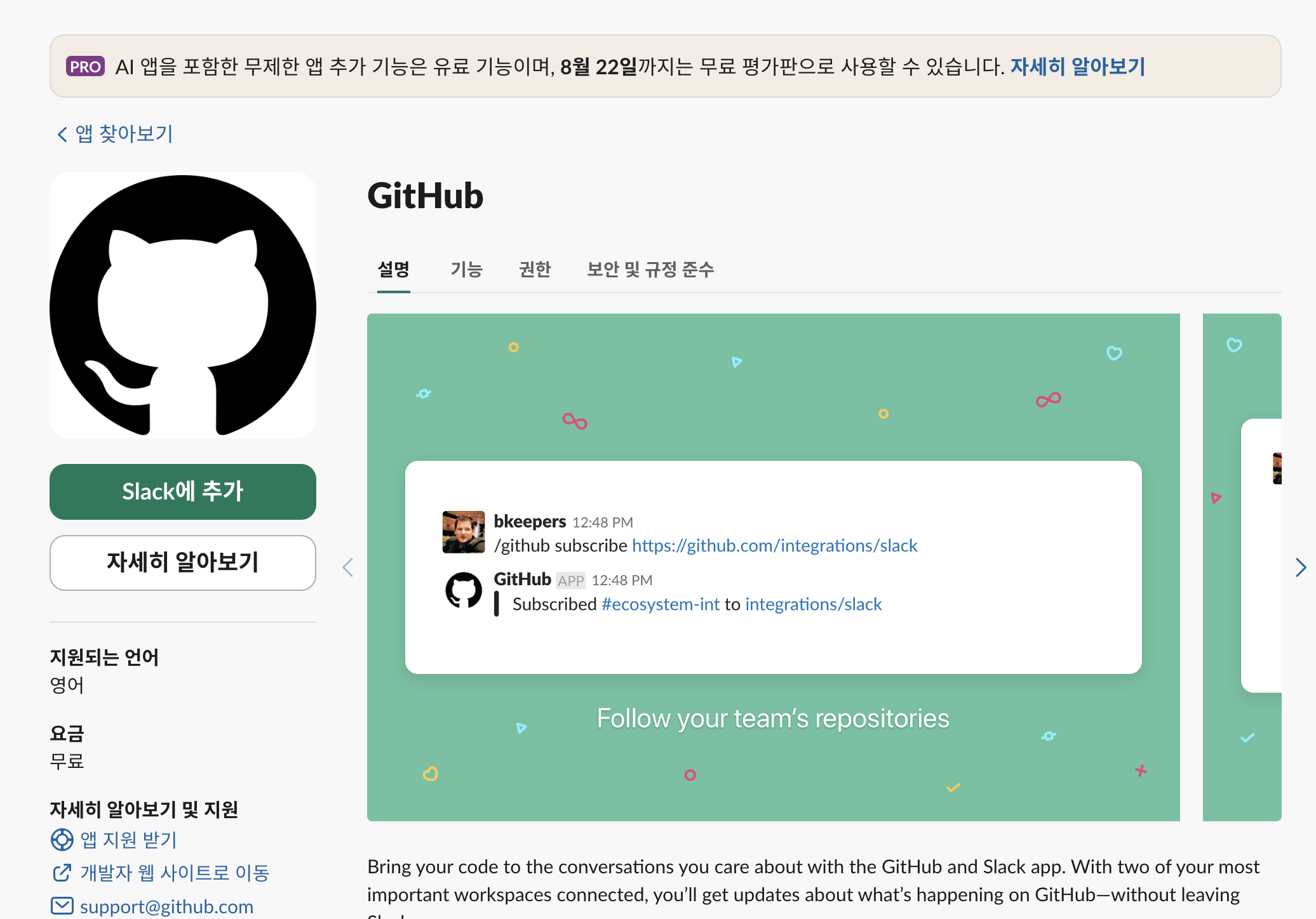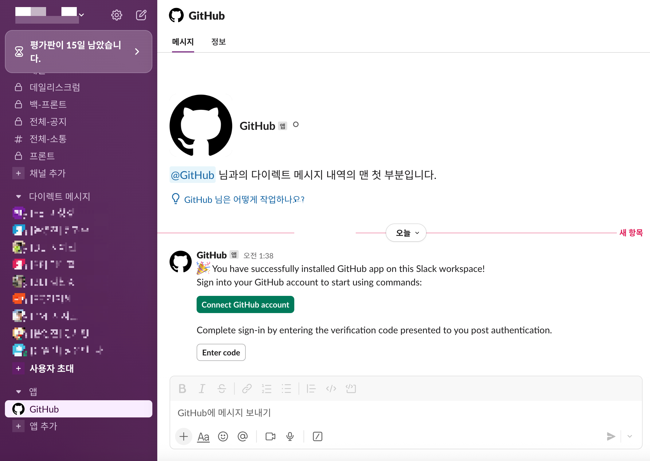 🔗 1단계: GitHub 공식 슬랙 앱 설치